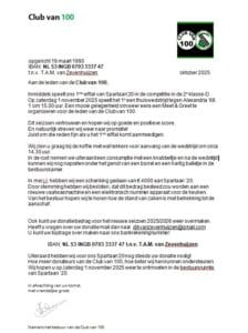 Zaterdag 1 november 2025 is de volgende Ontmoet & Groet voor de CLUB VAN 100.