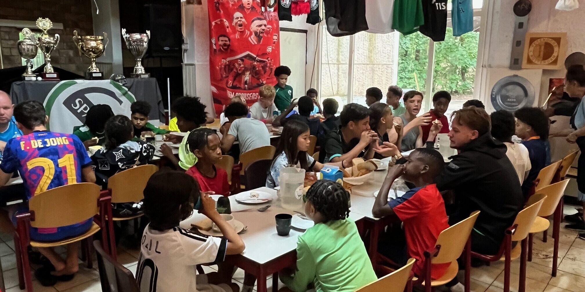 Na een druk voetbalprogramma in de ochtend ging men aan de lunch, ditmaal soep en brood. En uw verslaggever mocht uiteraard een boterham mee-eten.