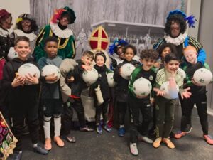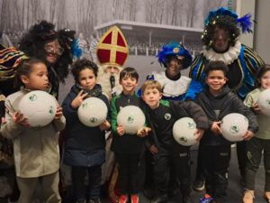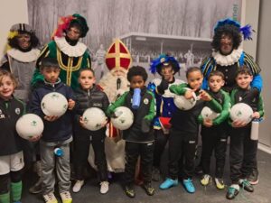 Er waren 80 kinderen uit de leeftijdsgroepen Onder8 en Onder9 naar Spartaan’20 gekomen om de Sint en een paar van zijn Pieten te begroeten. Ondanks dat het Sinterklaasjournaal allerlei problemen doorgeeft valt dat volgens Sint zelf reuze mee.