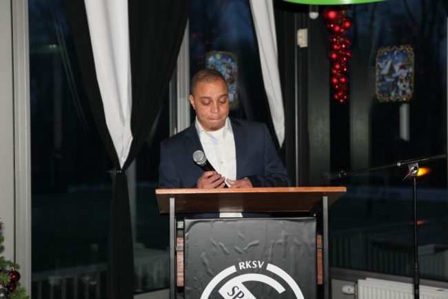 Een lekkere volle kantine aan het begin van de zaterdagavond: om klokslag zes uur heette voorzitter Leandro Lopes alle vrijwilligers welkom, nadat hij daarvoor al iedereen persoonlijk had begroet en voorzien van consumptiebonnen. Een heerlijk buffet volgde. Rond de klok van acht was het tijd om de Vrijwilliger van het Jaar in de diverse categorieën…