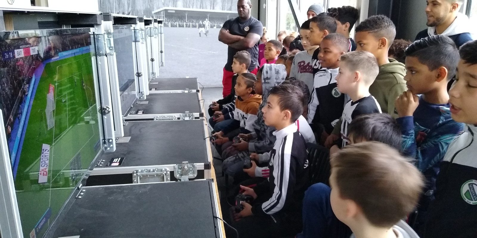 Zondag 9 februari hadden we weer een geweldig geslaagde jubileum-activiteit: het FIFA-toernooi voor de spelers van de O11 t/m O15. Rond de 120 kinderen vertoonden hun kunsten op 1 van de 10 schermen die stonden opgesteld in de kantine.
