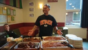 Na een voedzame pastamaaltijd op vrijdag was er zaterdag, na de wedstrijd tegen vv Hierde, een overheerlijk diner met bami, kip en pindasaus, gemaakt door nieuwe verzorger Robertino, die ook een uitstekend cateraar blijkt te zijn.