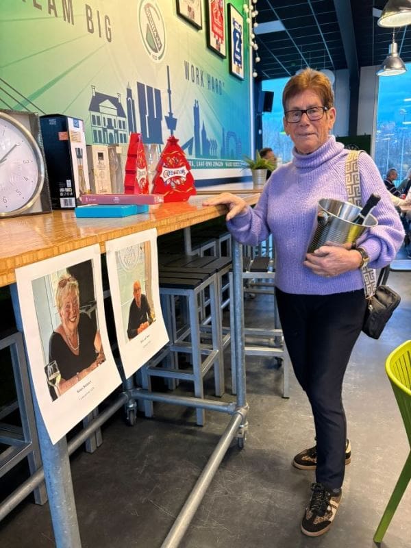 Het barpersoneel werd uitgebreid met Anja. Op de foto ziet u haar heen en weer rennen om het zo goed mogelijk te doen.