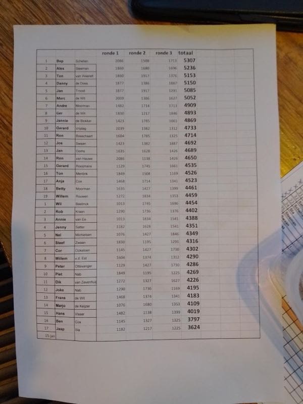 U kunt de volledige uitslag op de foto zelf bestuderen, waarna we ons voor de volgende ronde aan gaan melden. Die volgende ronde kondigen we hieronder aan.