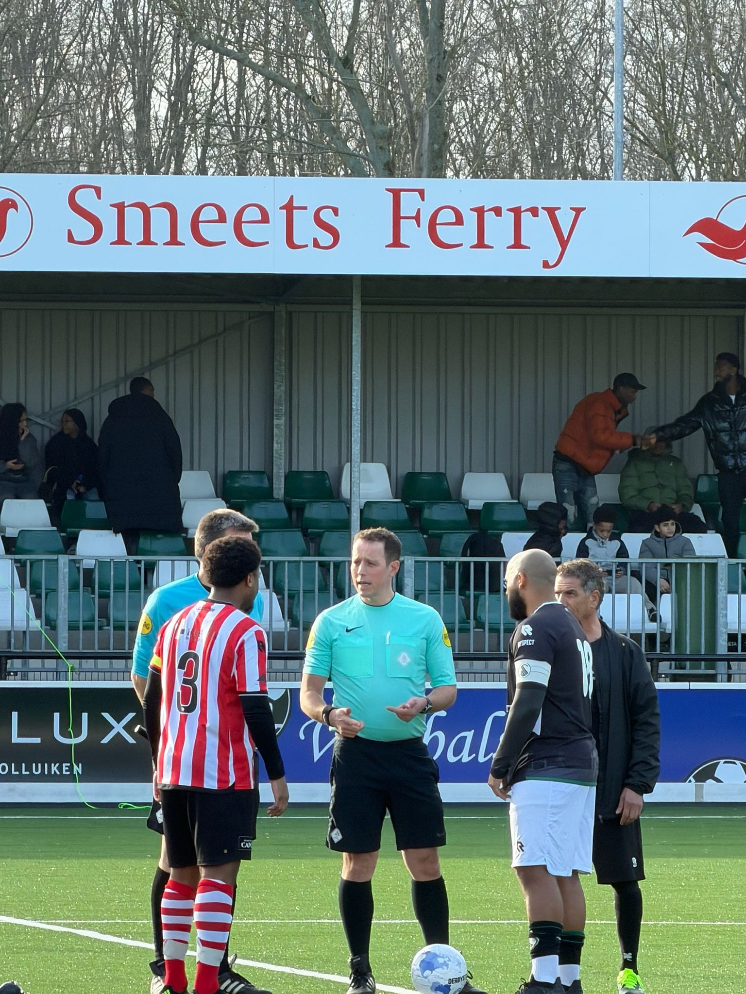 Na rust blijft het spelbeeld hetzelfde, al wordt Spartaan’20 iets directer in de opbouw. In de 53e minuut volgt dan eindelijk de beloning. Een afgeslagen bal, half verwerkt door Sparta‑keeper Michael Brongers, valt voor de voeten van Danielson Vieira de Pina. “Dani” aarzelt geen moment: met een knappe aanname en een snelle beslissing krult hij de bal vanaf ongeveer dertig meter, vanaf de zijlijn, met zijn linkerbeen over de doelman heen. Een schitterende treffer die het publiek op de banken krijgt.