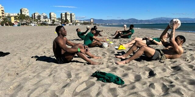 Op dag 3 (zaterdag) hebben de mannen een zware strandtraining afgewerkt in de ochtend. Dat voelde extra pittig, omdat men de avond ervoor op stap mocht!
